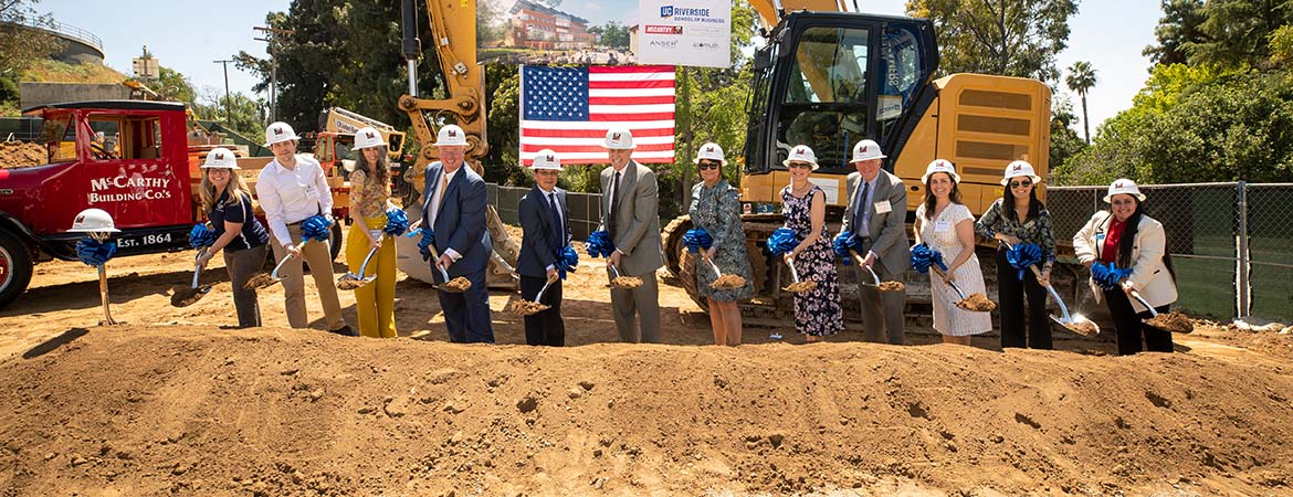Groundbreaking ceremony 2023, campus leaders shoveling dirt